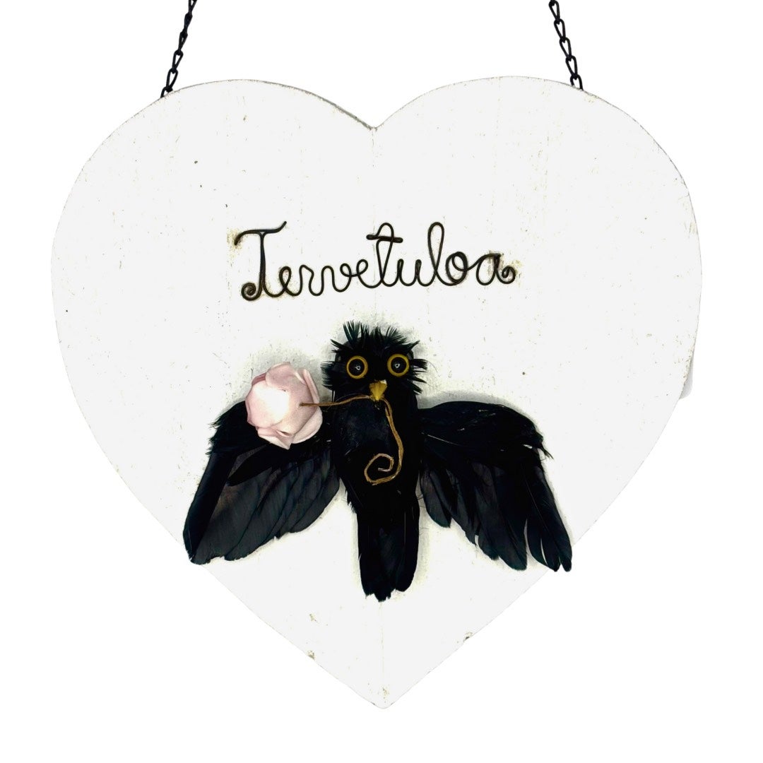 - Käsin taiteiltu rautalankainen Tervetuloa-teksti.