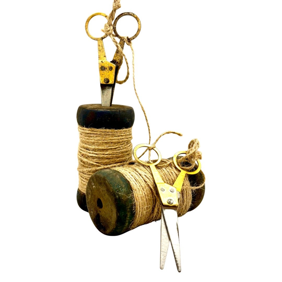 Ihastuttava puurulla, jossa luonnon juuttinarua ja pienet sakset. Kaunis käyttöesine ja koriste samassa. Kiva lahjaidea!