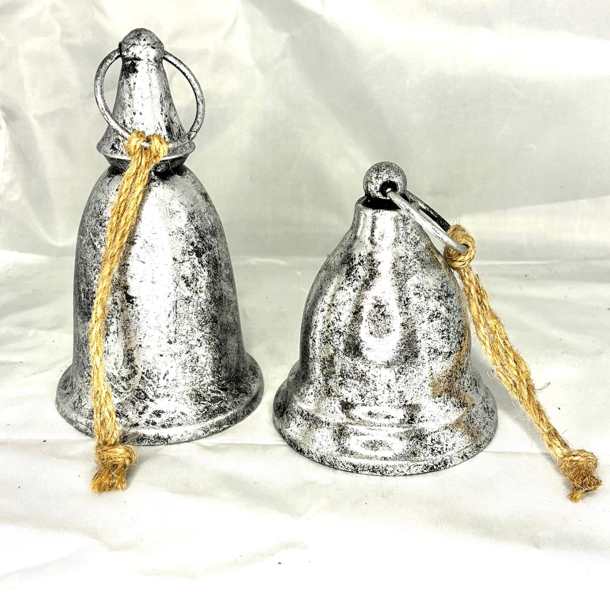 Mahtavan suuret antiikin hopean väriset kellot. Metallista valmistetut kellot soivat kaunnisti ja kruunaavat koristelun. Saatavana kahta mallia- matala ja suippo.