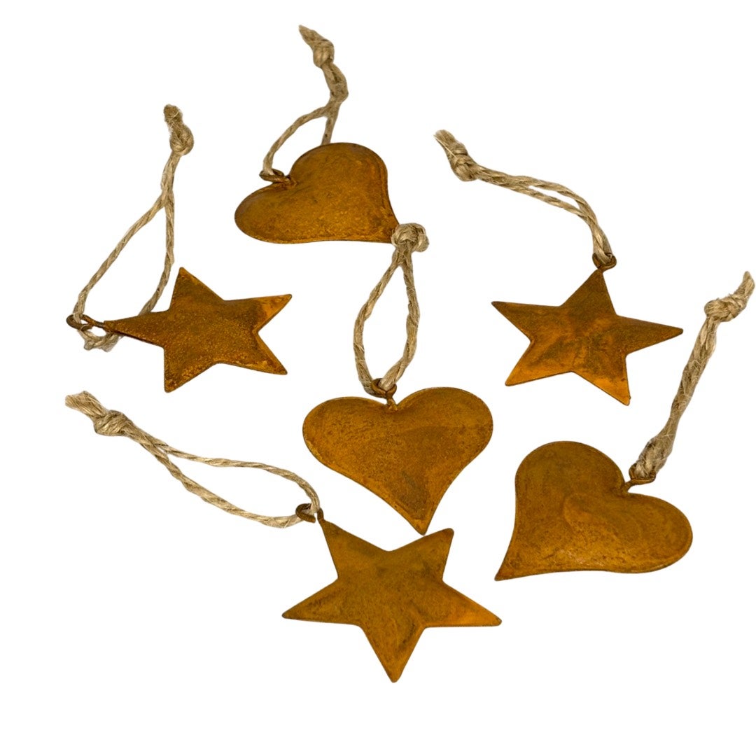 Ihana setti pieniä ruosteisia sydämiä ja tähtiä. Setti sisältää 3 tähteä ja 3 sydäntä.
