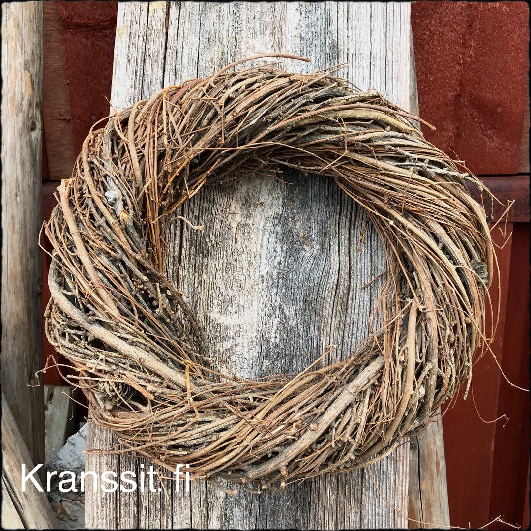 Näyttävä kierrekranssi lehtikuusesta. Joissain kransseissa on mukana jopa lehtikuusen käpyjä. Todella viehättävä ja näyttävä luonnonharmahtava kranssipohja. Ovikranssina todella kaunis. Laadukas valinta. Saatavana kahta eri kokoa.